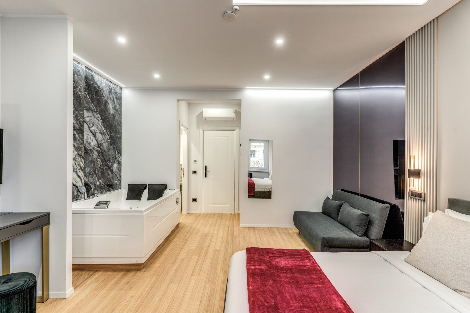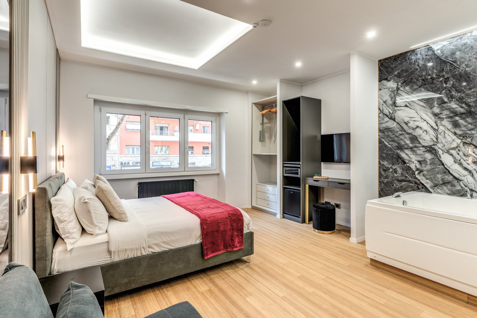 Ideale per coppie, viaggiatori esigenti o soggiorni romantici, questa suite è un rifugio urbano dove Roma si lascia ammirare di giorno… e assaporare lentamente la sera. Una pausa di charme, tra storia, bellezza e benessere, nel cuore della Città Eterna.